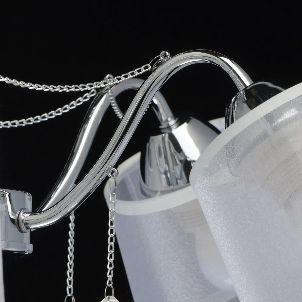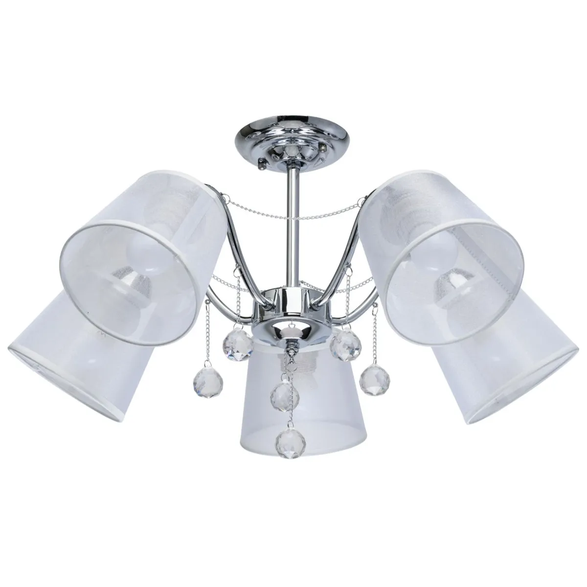 Основание/ металл/ хром. Абажуры/текстиль/ белый. Декор/ прозрачный хрусталь